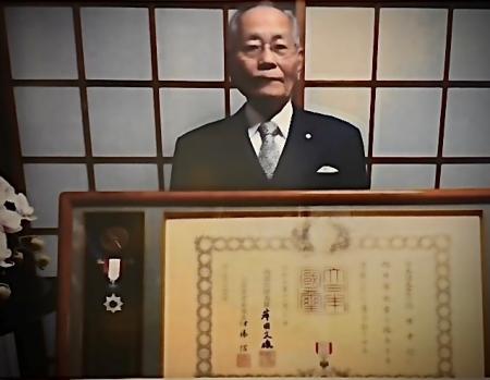 通夜式に参列させていただいた際に飾れていました受章のお写真を撮影させていただきました。