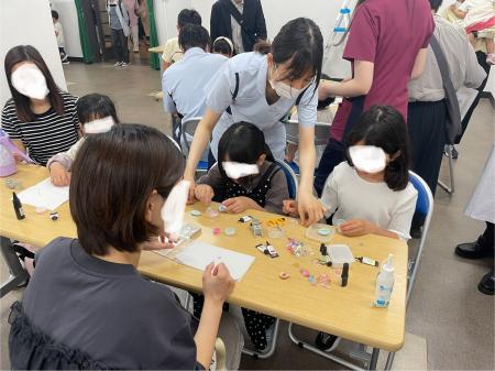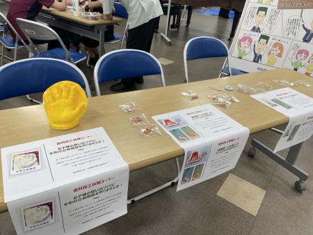 別府支部(別府市歯科技工士会)は、大分県歯科技術専門学校の歯科技工科の学生と一緒に、来場した子供たちに、歯のストラップ、入れ歯のストラップや、手形模型作りなどを体験してもらい、歯科技工の世界を知ってもらいました^ ^ - ^