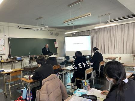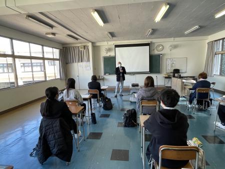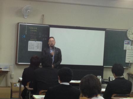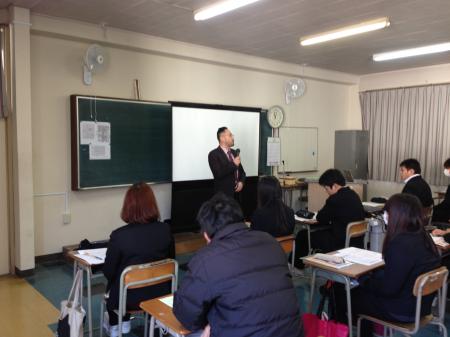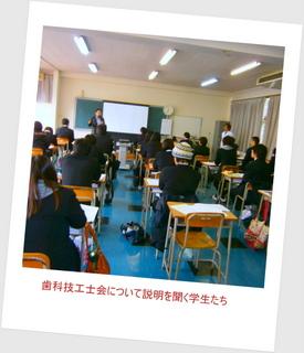 大分県歯科技術専門学校は歯科技工士と歯科衛生士のダブルライセンスコースの学生が大半という事もあり、今年歯科技工士として就職する生徒は多くはありませんでしたが、真剣な眼差しで三苫組織理事の説明を聞いていました。