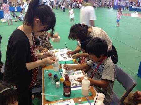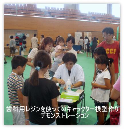 歯科技工士の仕事を知ってもらう企画として、テック製作の方法で、歯科用レジンを使って、キャラクターのフィギュア模型を作ってもらい、それにペイントしてもらって、手作りのキャラクターのストラップを作ってもらいました。