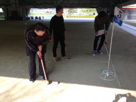 当初、竹田市総合運動公園でグラウンドゴルフ大会を計画していましたが、残念ながら雨天のため、室内でのゲーム大会に変更となりました。