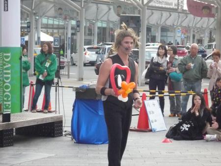 静岡駅前広場で 流暢な関西弁??を話しお客様との会話のやり取りがウケていました!アメリカのバルーン アーティスト