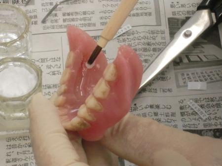 そして義歯の中にネームを入れ即時重合レジンで蓋をし