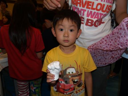 技工士の私達は、毎年手形、足形、人形の色ぬるりなどを、子供たちに提供し、子供たちと一緒になって楽しませてもらっています。